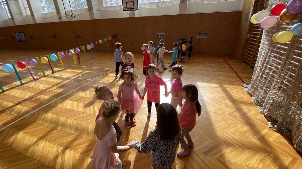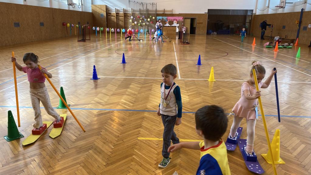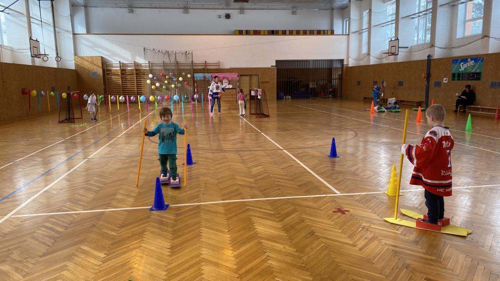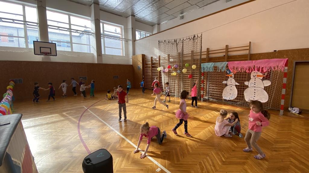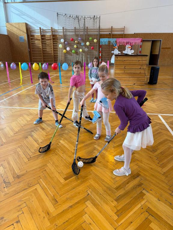 Celé zábavné dopoledne se neslo v duchu OLYMPIJSKÝCH HER. Děti se proměnily ve sportovce a svědomitě plnily všechny sportovní disciplíny. Sešli se zde lyžaři, hokejisti, biatlonisti i jezdci na bobech. Ti všichni byli za své úspěšné snažení odměněni dárečky, které si vytočili na kole štěstí. Poté již následovala patřičná oslava, na které se radostně tančilo a dovádělo. Děti si akci velice užili.