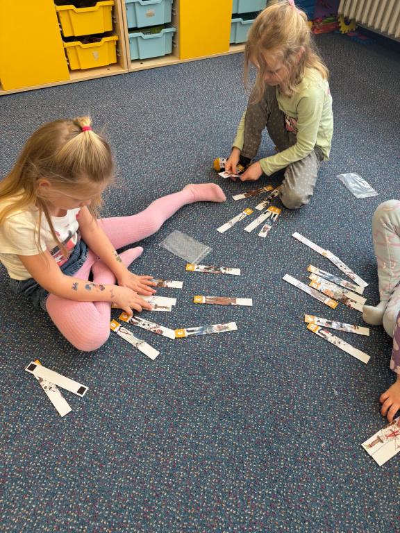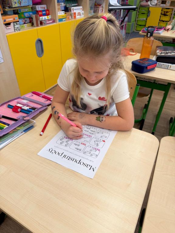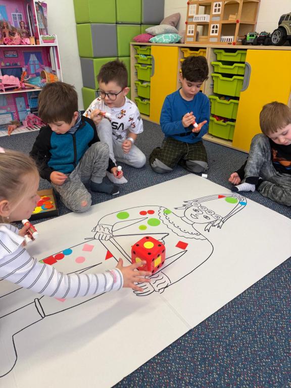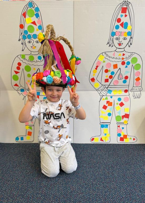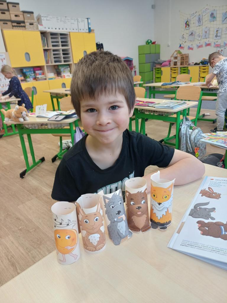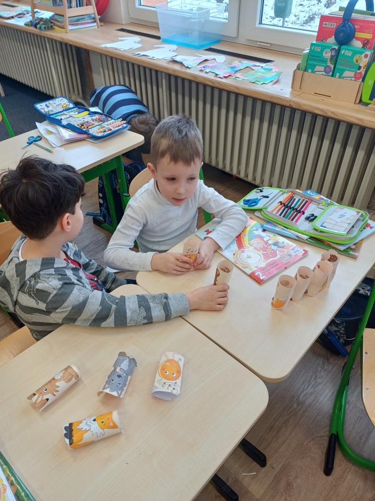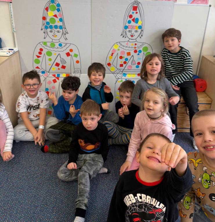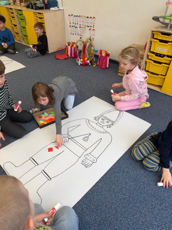 Program jsme zahájili pohádkou O koblížkovi, protože právě koblihy, koláče a další dobroty jsou neodmyslitelnou součástí masopustního období. Povídali jsme si o tom, proč se masopust slaví a jaké zvyky k němu patří. Děti si poté vyrobily barevné čepice, jaké nosí Laufr, a naučily se také jeho veselý taneček. Nechybělo ani tvoření z modelíny – modelovali jsme koláče a společně je počítali. Při této aktivitě jsme si procvičili nejen jemnou motoriku, ale i předmatematické dovednosti.Společně jsme si představili jednotlivé masopustní postavy, které si děti vybarvily podle vlastní fantazie. Na závěr jsme procvičili geometrické tvary, kterými jsme ozdobili postavu Laufra.
