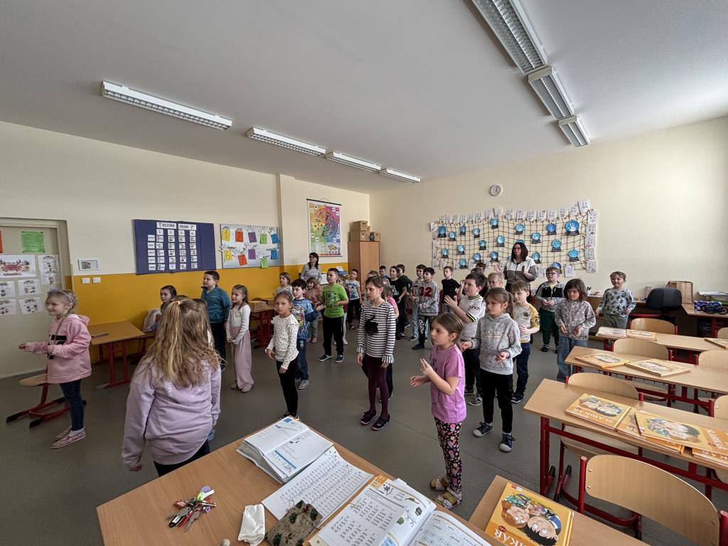Vzájemně si obě třídy předvedly, jak se jim parádně daří ve čtení. A pak už jenom, společná hra na tělo, kterou jsme například doprovodili legendární skupinu Queen a jejich We will rock you!