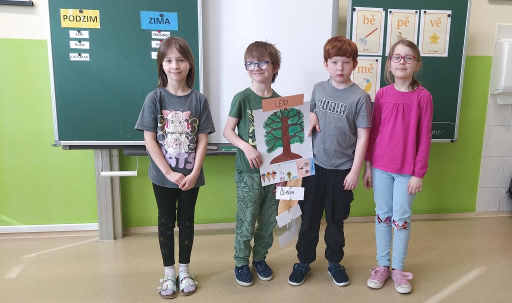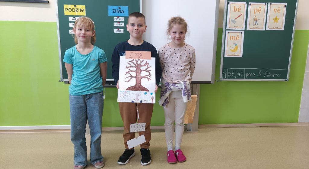 Třída Medvíďátek ze druhého ročníku se v uplynulých dnech v hodinách Prvouky věnovala tématu kalendářního roku a ročních období. Děti si společně povídaly o tom, jak se během roku střídá jaro, léto, podzim, zima, jaké jsou jejich hlavní znaky a jak se proměňuje příroda i život kolem nás. Připomněly si měsíce v roce, typické počasí i svátky, které se k jednotlivým obdobím vážou.