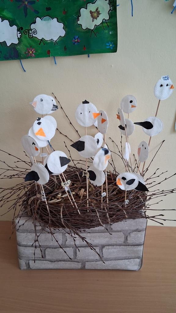 Ve třídě už se uhnízdila početná čapí rodinka a nad loukou s jarním kvítím prolétly první (papírové) vlaštovky.
