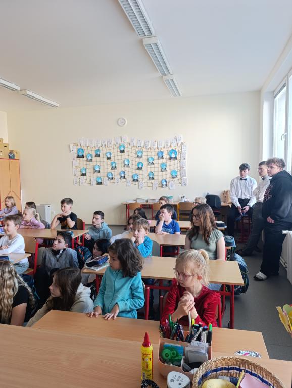 Březen je tradičně označován jako MĚSÍC KNIHY, a proto se žáci deváté třídy rozhodli připravit pro své malé kamarády z prvních tříd společné čtení. Setkání proběhlo v příjemné atmosféře a bylo plné pohádek, smíchu i zajímavých příběhů.