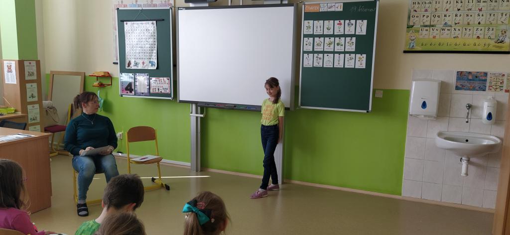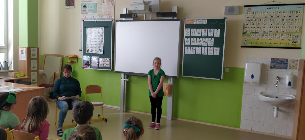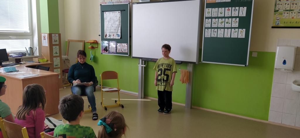 Dne 19. března se v naší třídě Medvíďátek uskutečnilo třídní kolo recitační soutěže. Děti se na tuto událost poctivě připravovaly. Nejenže se naučily své básničky zpaměti, ale věnovaly se také jejich správnému přednesu a procítění. Všichni účastníci podali skvělé výkony a bylo znát, kolik úsilí do přípravy vložili. Porota to neměla vůbec jednoduché, přesto nakonec rozhodla o následujícím pořadí: na prvním místě se umístil Štěpán Homolka s básní Velryba, na druhém místě Viktorie Chourová s básní Co všechno maluje slunce a na třetím místě Sára Poláčková s básní Ptám se, ptám se, pampeliško. Tito tři žáci postupují do školního kola recitační soutěže, které se uskuteční ve čtvrtek 26. března v naší škole.