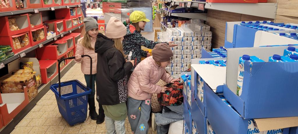 Potom se děti rozdělily do tří barevných skupinek a pustily se do hledání lístečků schovaných po třídě. Na nich postupně objevovaly svůj nákupní seznam, který si musely pečlivě přepsat, aby na nic nezapomněly. Někteří by si možná raději napsali i něco navíc, ale drželi jsme se plánu. A pak hurá na nákup do Lidlu! Před vstupem jsme si ještě připomněli pravidla slušného chování v obchodě, a světe div se, opravdu jsme je dodrželi. Děti po skupinkách hledaly potřebné suroviny a vedly si skvěle. Všichni zvládli nejen nákup, ale i placení u samoobslužných pokladen, což byl pro některé skoro větší zážitek než samotné pečení.
