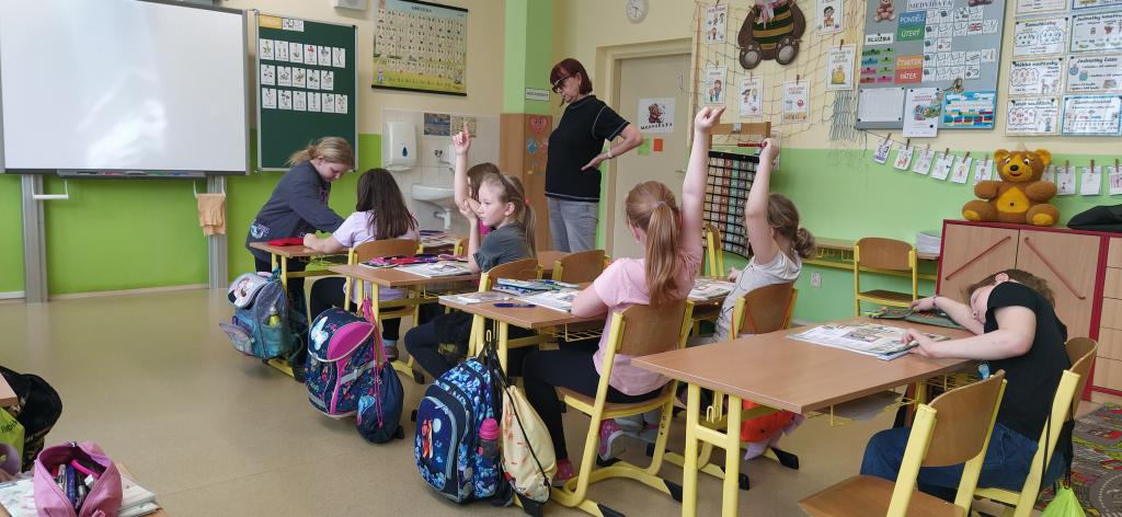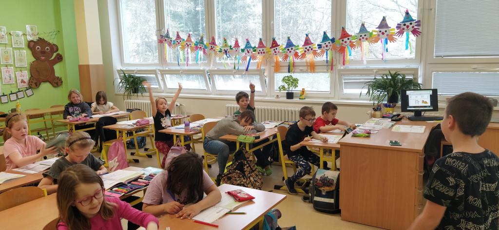 Na Apríla 1. dubna, kdy se tradičně dělají různé legrace a žertíky, jsme si ve třídě Medvíďátek připravili opravdu netradiční den. S dětmi jsme si totiž na celé vyučovací dopoledne vyměnili role. Medvíďátka se postupně střídala v roli učitelek a učitelů. S velkým nadšením se děti ujaly výuky svých spolužáků, vysvětlovaly úkoly, vyvolávaly i „zkoušely“ ostatní a také kontrolovaly splněné úkoly. Paní učitelka si naopak sedla do školní lavice a stala se na chvíli spolužačkou svých Medvíďátek.