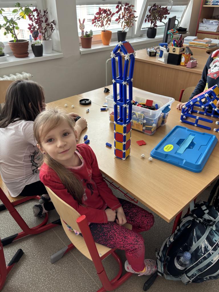 Poté děti ukázaly, že jsou také velmi šikovní stavitelé. Pustily se do stavění ze stavebnice a vznikaly opravdu nápadité výtvory. Bylo krásné sledovat jejich spolupráci i nadšení pro tvoření.