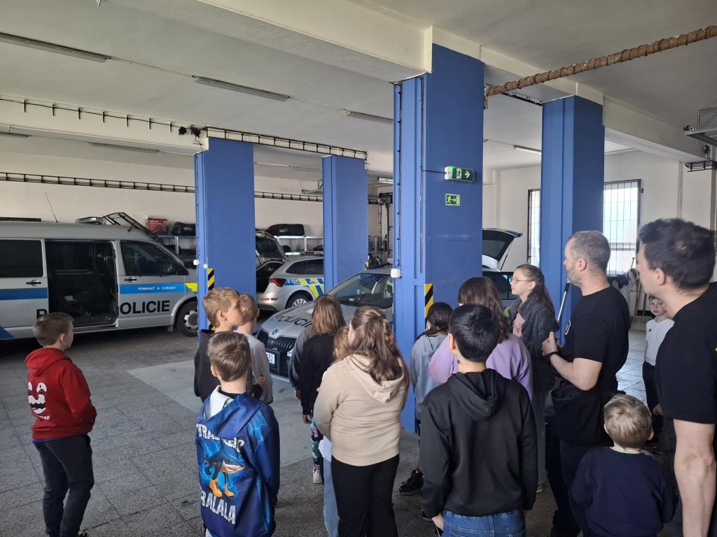 Nakonec jsme dostali možnost podívat se do garáží PČR, kde jsme viděli mnoho zajímavého! Nejprve