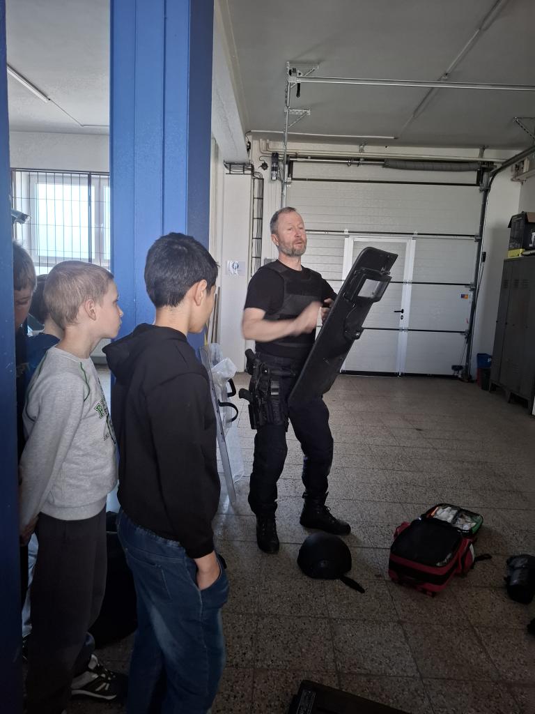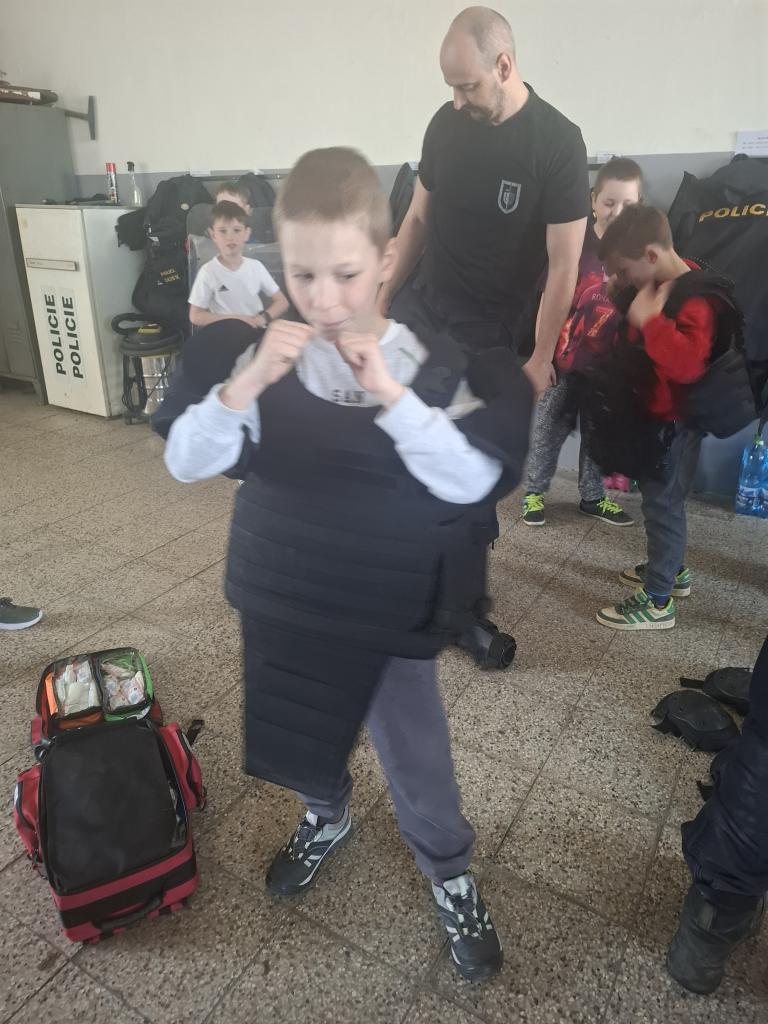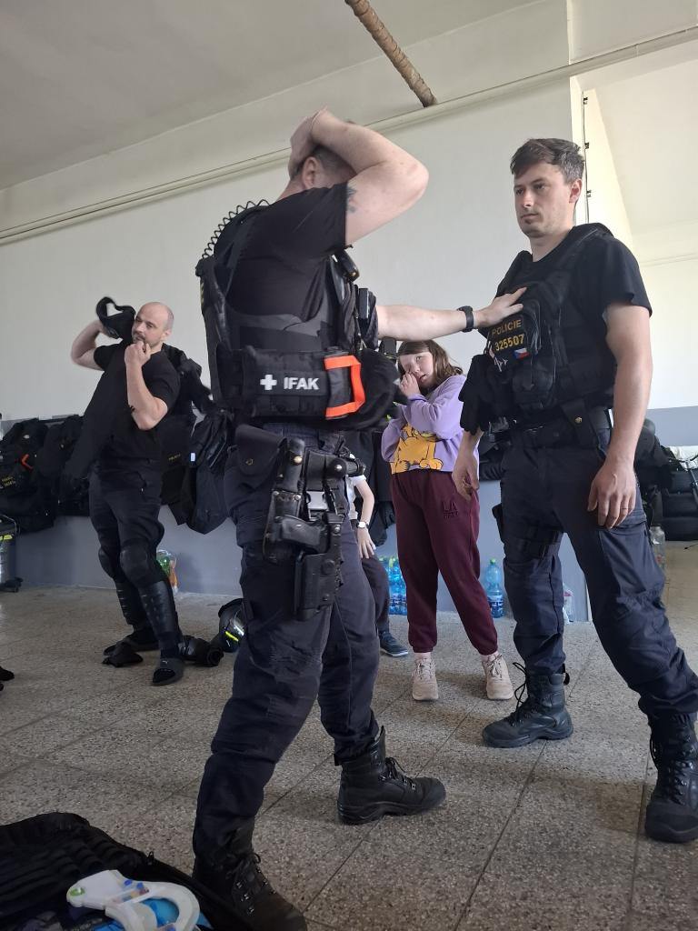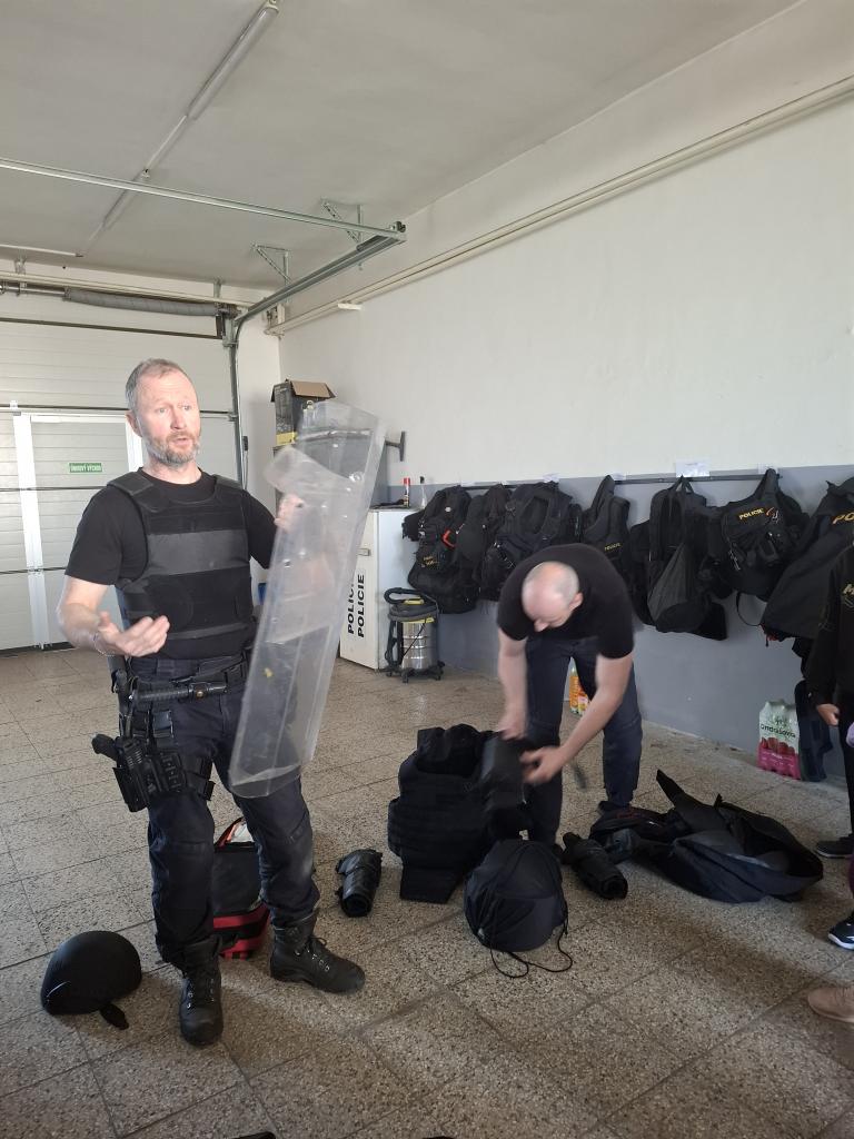 obušek, štíty, pouta a mnoho dalšího. Dokonce jsme měli i možnost shlédnout zneškodnění pachatele