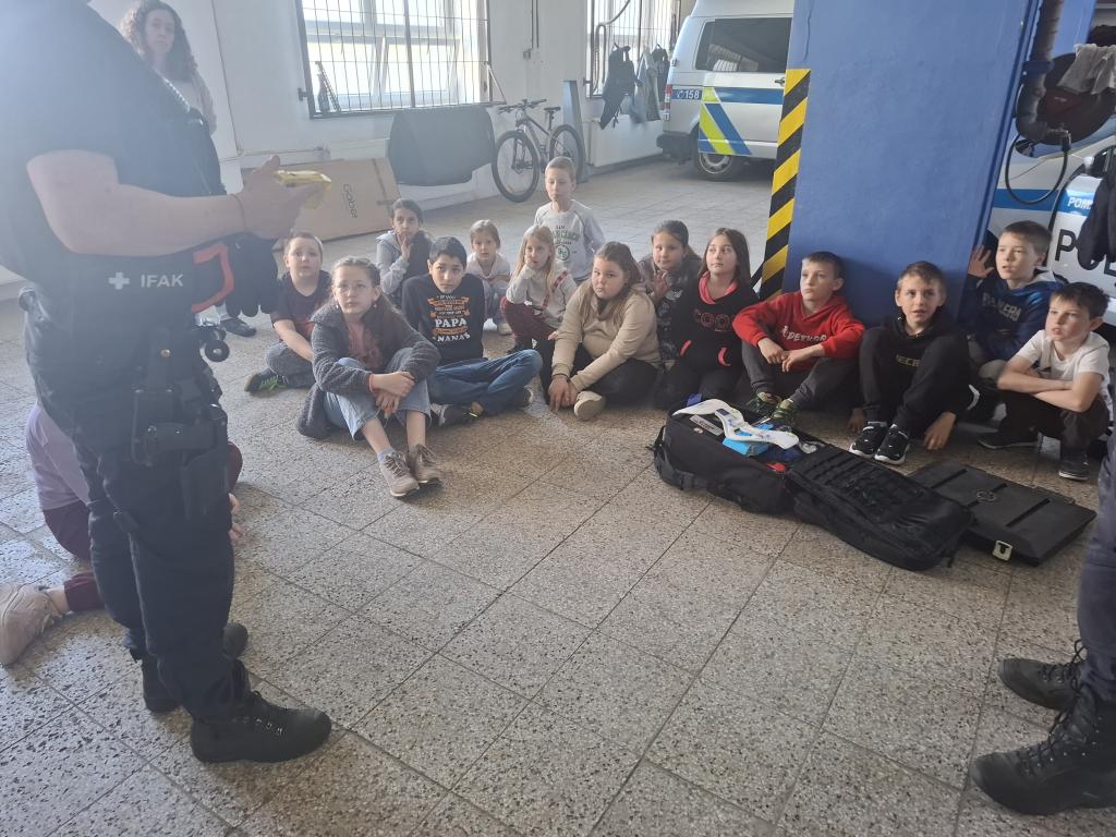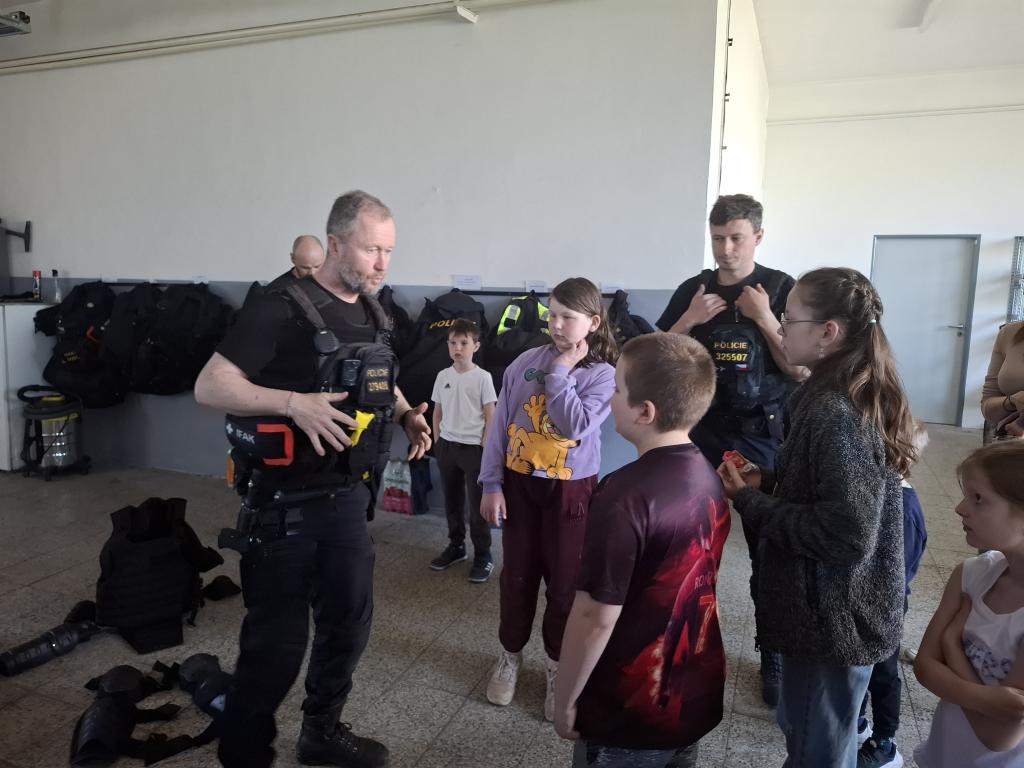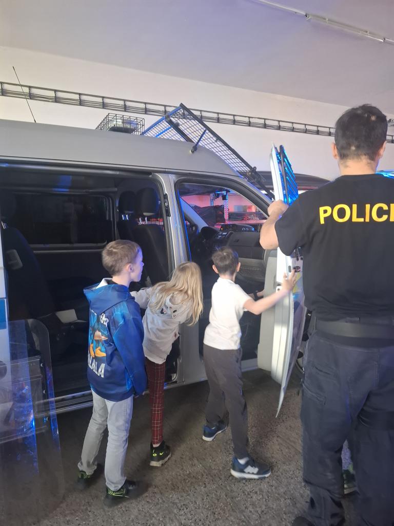 Ve středu 22. 4. 2026 dostala třída Mravenečků možnost podívat se na služebnu Policie ČR. Hned si