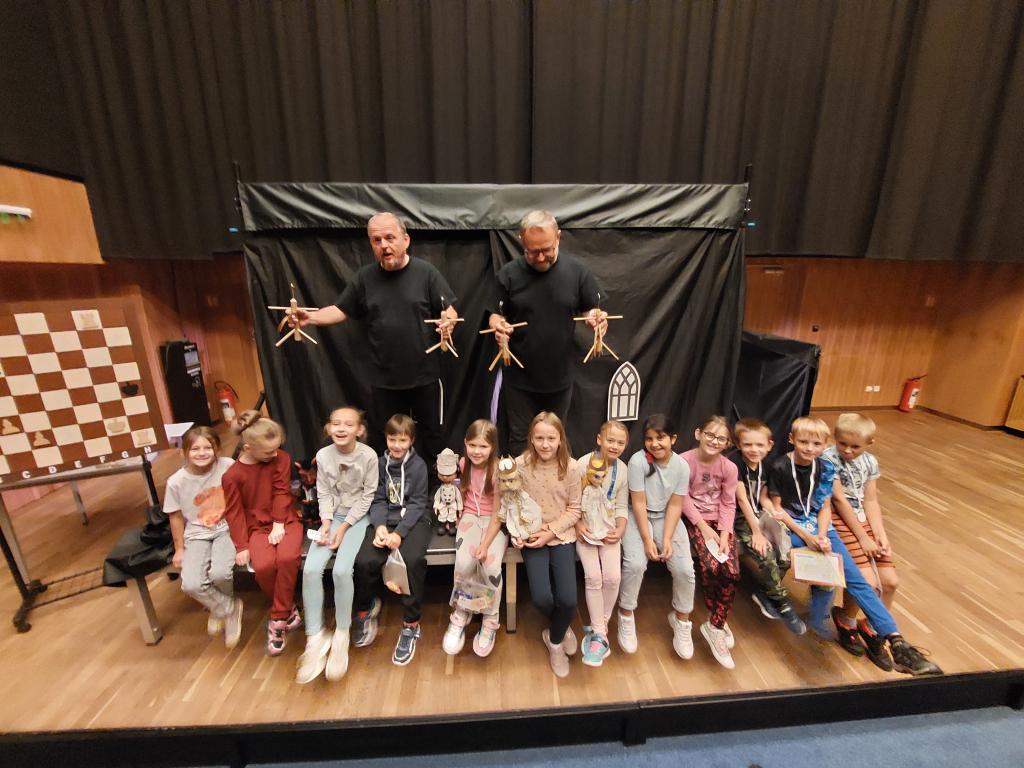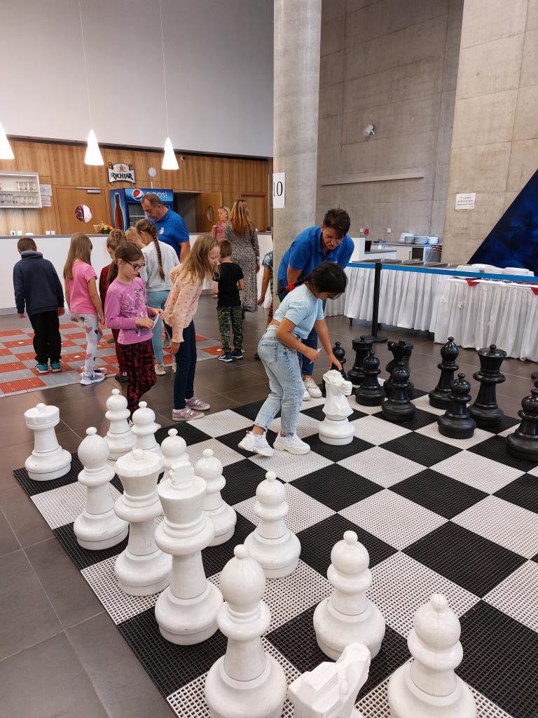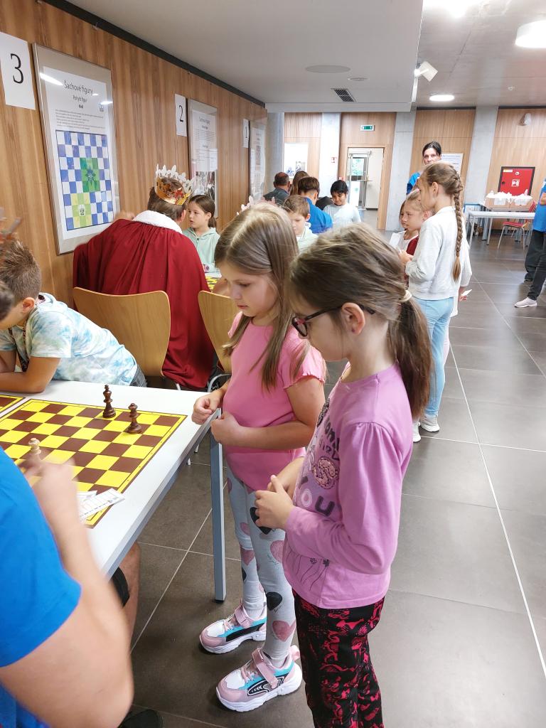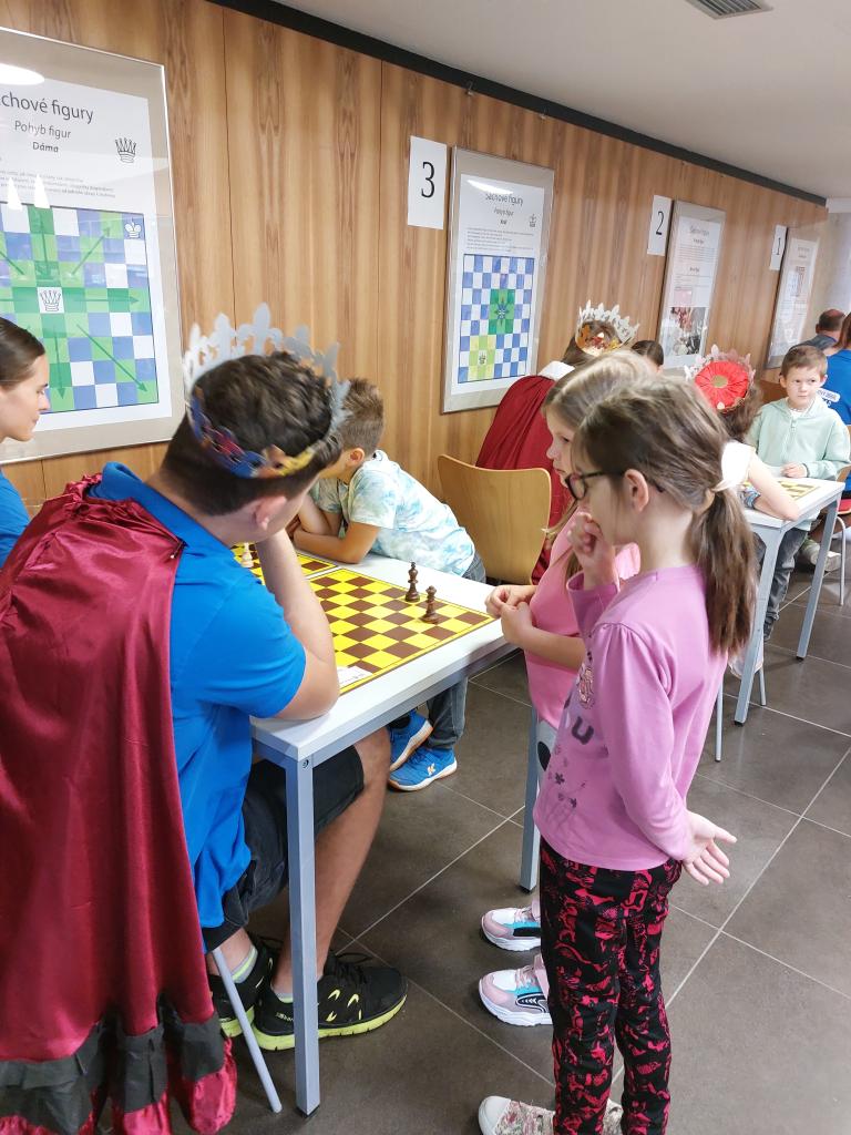 Hned po uvítání jsme se zúčastnili úkolů, které byly připraveny u deseti stanovišť. Po jejich splnění jsme si vysloužili malý dáreček. Divadelní soubor Poklad měl pro nás připravenou krátkou pohádku. Abychom vysvobodili princeznu, museli jsme poradit králi, jak sehrát vítěznou šachovou partii. Naštěstí to dobře dopadlo a princezna byla zachráněna! I po loutkovém divadle bylo pořád co dělat. Měli jsme možnost si zahrát šachy, nechat si pomalovat obličej nebo si vymalovat omalovánku ve výtvarné dílničce. Všeho jsme využili dosyta.