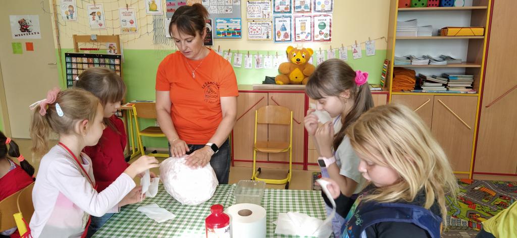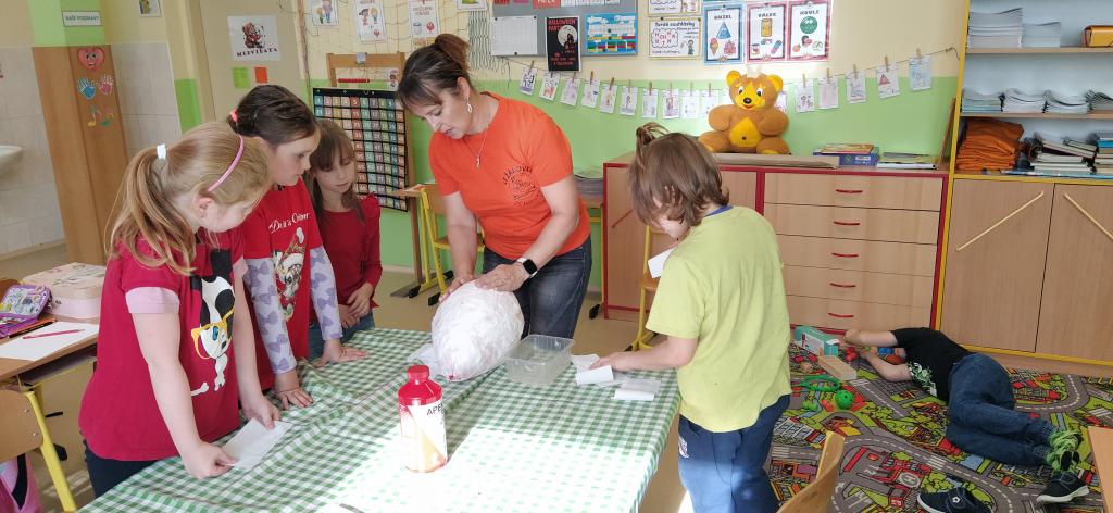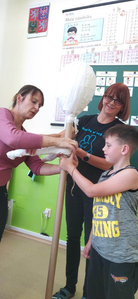 Ještě před samotným projektovým dnem se Medvíďata pilně připravovala – učila se báseň „Strašidla“, kterou pak s odvahou a nadšením přednesla na naší „Halloweenské párty“. Společnými silami jsme si také vyrobili svého vlastního maskota – ducha Emila, který nás celým dnem doprovázel. Nechyběl ani nácvik našeho strašidelného pokřiku, který měl zaznít přes celou tělocvičnu.
