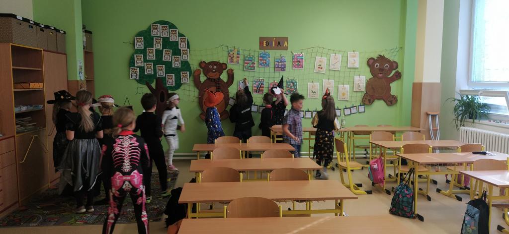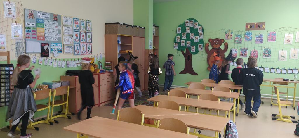 V pátek se naše škola proměnila ve strašidelný dům plný čarodějnic, duchů, kostlivců i malých dýní. Děti přišly v krásných kostýmech a už od rána panovala veselá halloweenská nálada.