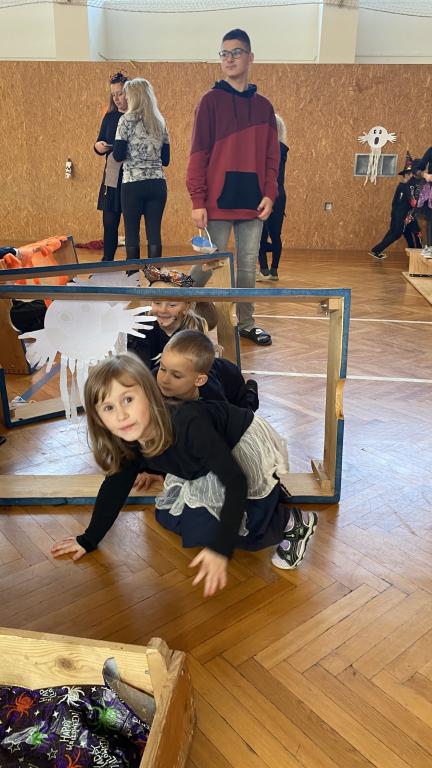 Děti plnily různé úkoly; zavěšený bonbón na provázku, závod s dýní nebo se strašidelným okem, pavučinové prolézání, tanec s duchy, strašidelný slalom, přeskakování nebezpečných pavouků, halloweenský kvíz a bingo, tajemnou krabici plnou překvapení a ochutnávací soutěž.