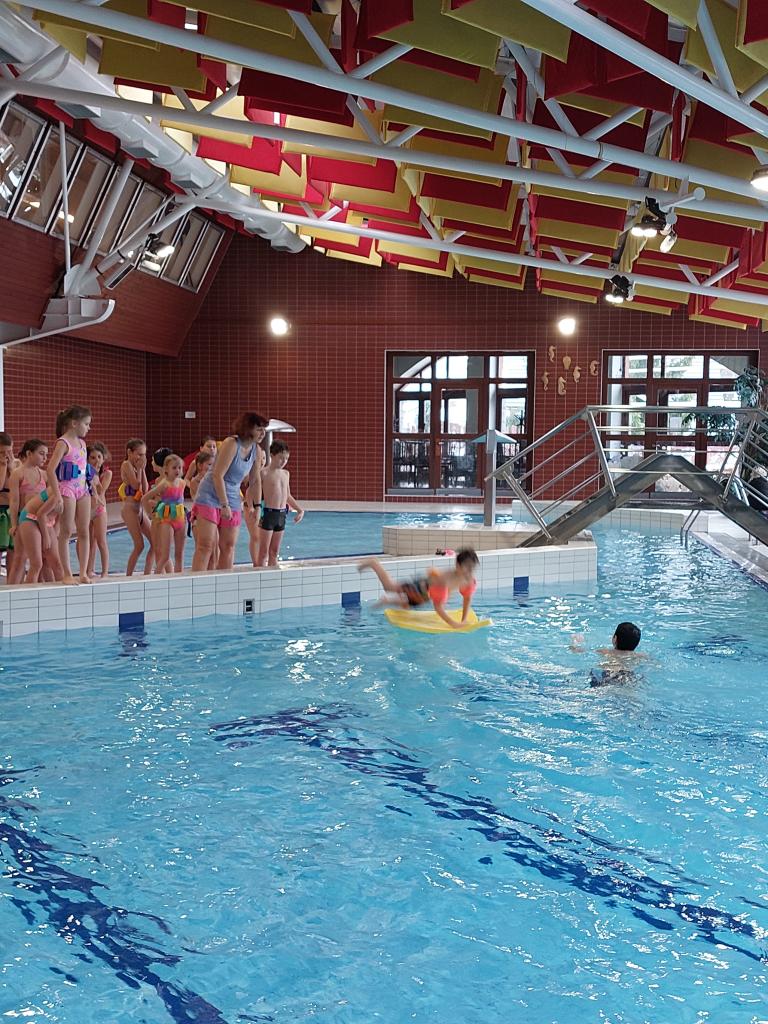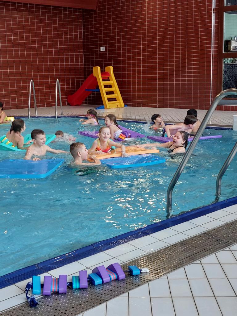 Poslední dny před jarními prázdninami jsme si zpříjemnili plaveckým výcvikem, který jsme měli tento týden hned dvakrát. Paní plavčice nás zkoušeli z toho, co jsme se během výcviku naučili: splývání, skok do vody, plavecké styly. Nechyběla ani zábava ve formě her a soutěží. Většina z nás jsou už šikovní plavci, někdo se ještě pohybuje ve vodě s pomocí plaveckých pomůcek, ale veliký pokrok jsme udělali všichni. Mokré vysvědčení je tomu důkazem!