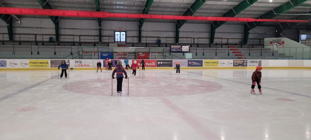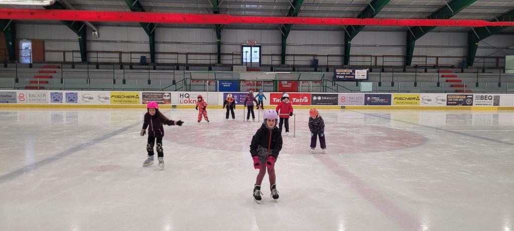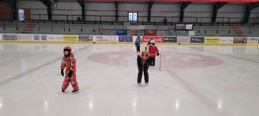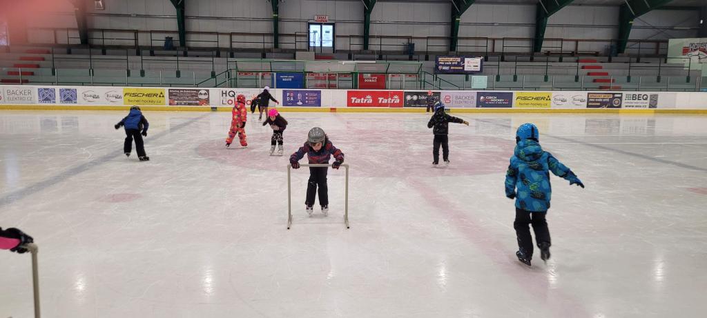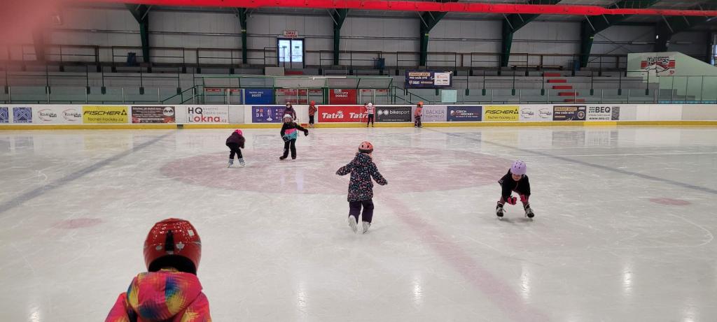Plavání vystřídalo bruslení a děti si to náramně užívají. Každému to jde jinak, ale všichni se navzájem podporují. Ti, co už to bruslí úplně sami, pomáhají těm méně zkušeným bruslařům. Všichni dělají pokroky, ať už menší či větší. Důležité je, že si společně užíváme sportovní zážitky jako parta.