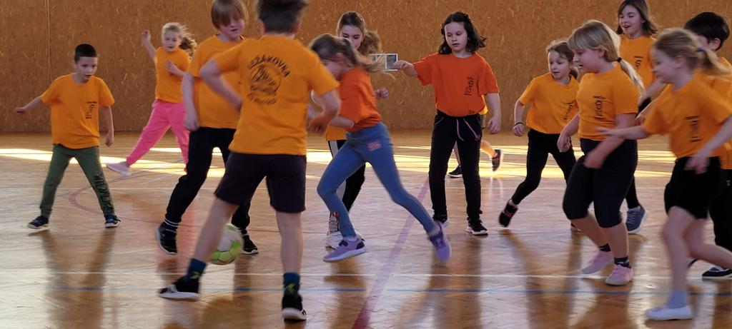 Žirafky pravidelně poctivě čtou knížky podle svého výběru. Za 25 přečtení v měsíci si prvních deset čtenářů vybírá z karet aktivit. Tento měsíc si jednu kartu vybral Ondrášek Byla to karta Hodina na přání. Místo českého jazyka si přál hodinu tělocviku. Stal se při ní fotbalovým trenérem a učil děti hrát fotbal. Po nástupu a lehkém rozběhání si Ondrášek děti rozdělil do dvou týmů: Zastrčených triček a Vystrčených triček. Aby byly týmy vyrovnané, musel jeden šikovný fotbalista Fíla hrát v obou týmech, první poločas v jednim, druhý ve druhém. A musím říct, že už se bylo na co koukat. Některé obehrávky holek byly opravdu parádní a i kluci fotbalisti měli co dělat, aby překonali výbornou holčičí obranu před brankou. Ve hře však nejvíc platí, hlavně si to užít a hrát fair play.