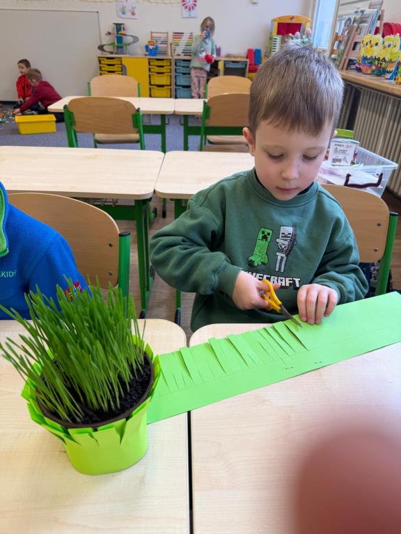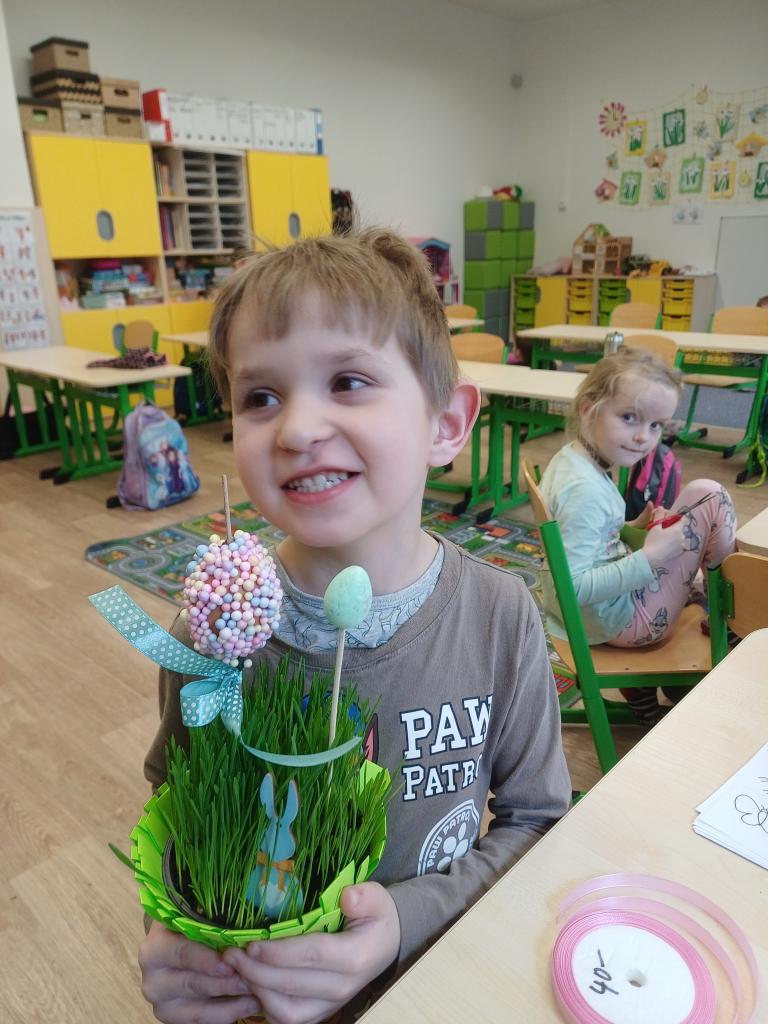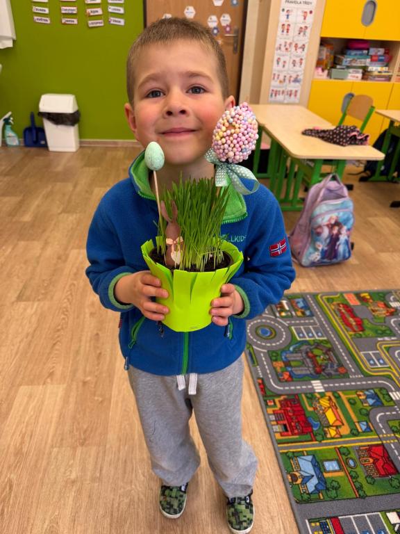 Během uplynulých dnů jsme si s dětmi užili krásné období svátků jara – Velikonoc. Celý týden se nesl v duchu zpěvu, her a tvoření. Společně jsme si povídali o významu Velikonoc a připomněli si tradice, které jsou s tímto obdobím spojené. Děti byly velmi šikovné a s nadšením se zapojily do všech aktivit. Vyrobily si jarní dekorace, ozdobily velikonoční vajíčka různými technikami a vytvořily roztomilé zajíčky i malovaná kuřátka. Velkou radost měly také z velikonočního osení, které si samy vypěstovaly a slavnostně si ho spolu s výrobky odnesly domů. Nechyběly ani zábavné hry – děti si vyzkoušely například foukání vajíček nebo jejich přenášení „jako slepička“. Naučili jsme se také veselou velikonoční písničku, kterou si děti s chutí zazpívaly.