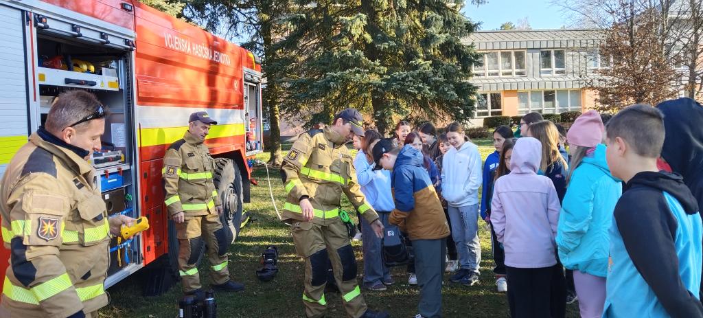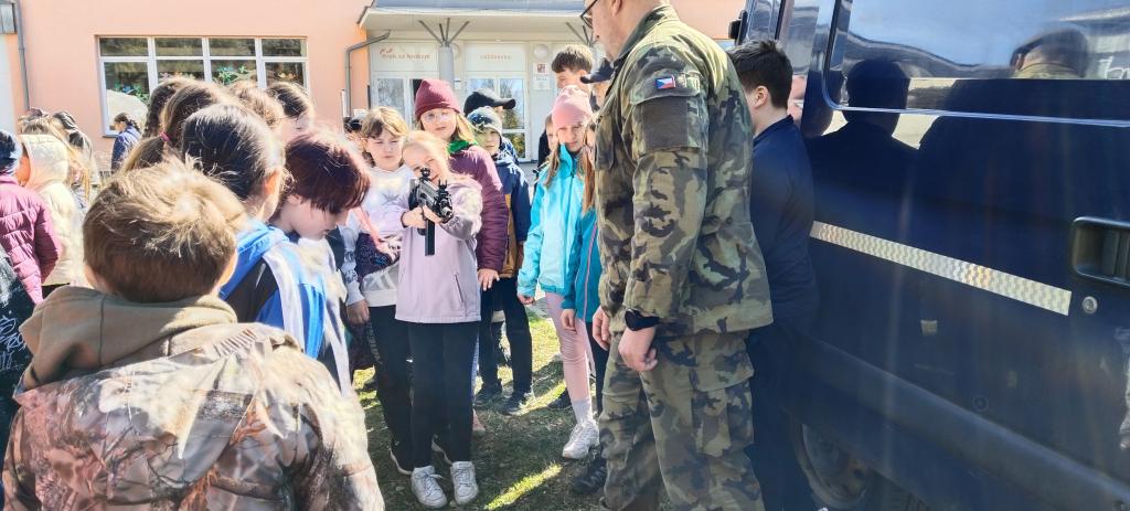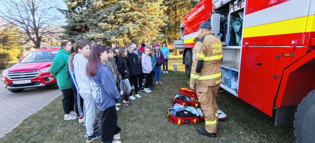 1. ve venkovních prostorách školy měli žáci možnost prohlédnout si hasičské auto VOJENSKÉ HASIČSKÉ JEDNOTKY Z TÝNIŠTĚ. Součástí byla ukázka vybavení s odborným výkladem.