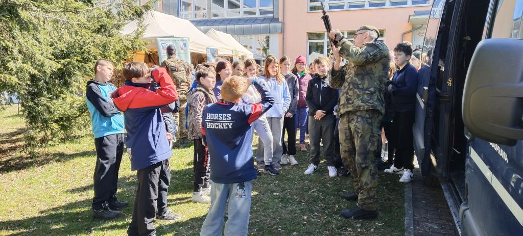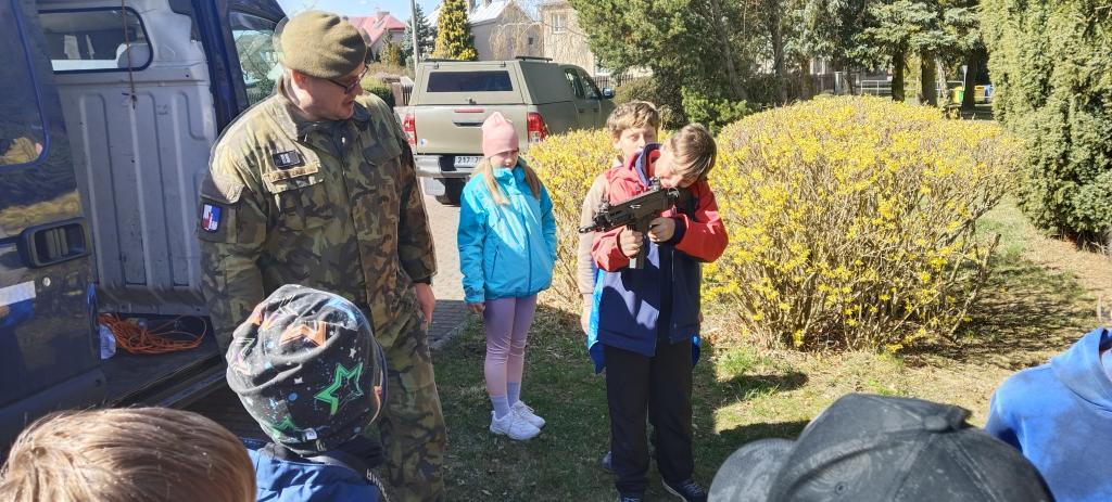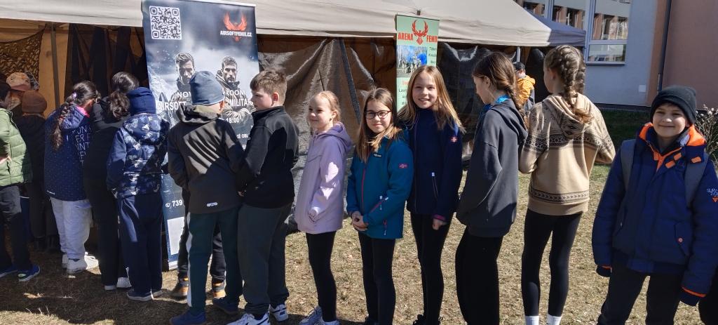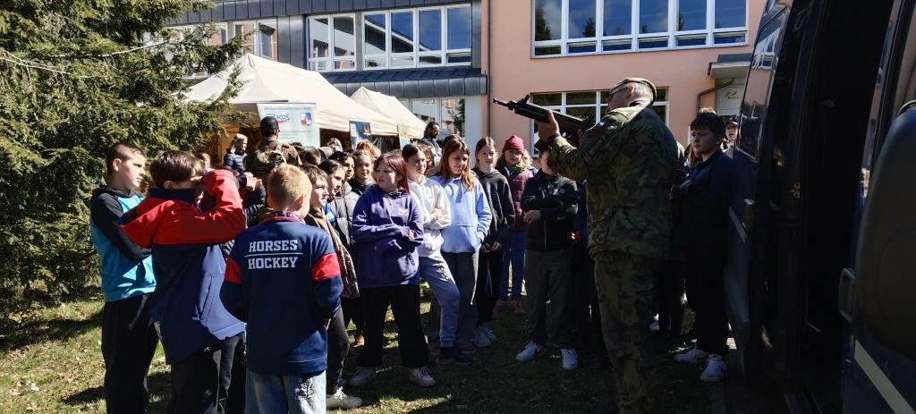 4. před budovou školy na žáky čekala ukázka vojenských zbraní a každý žák měl možnost použít AIRSOFTOVOU STŘELNICI.