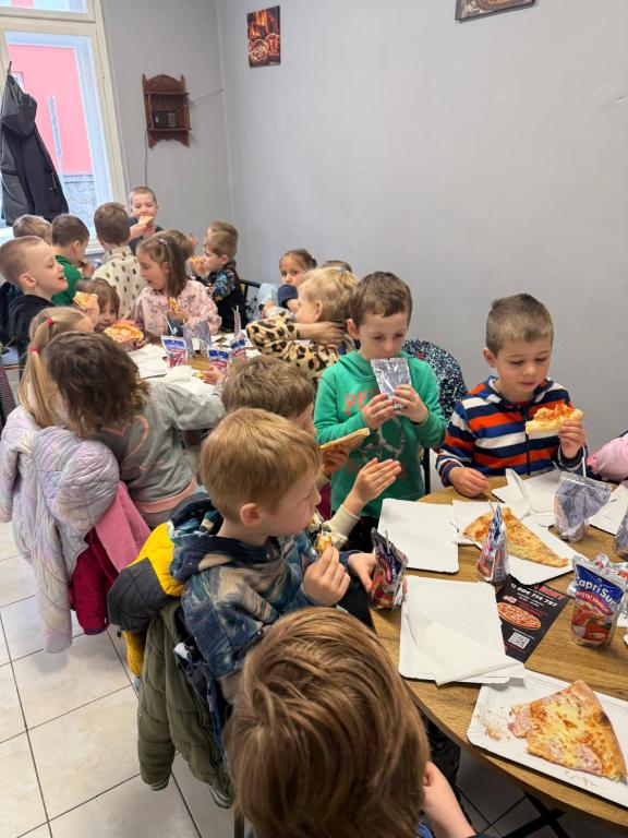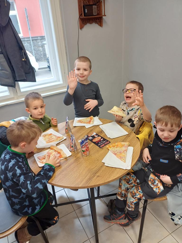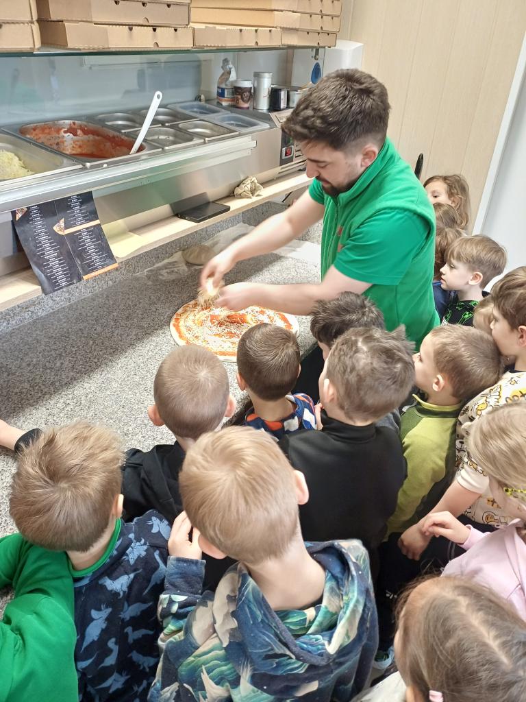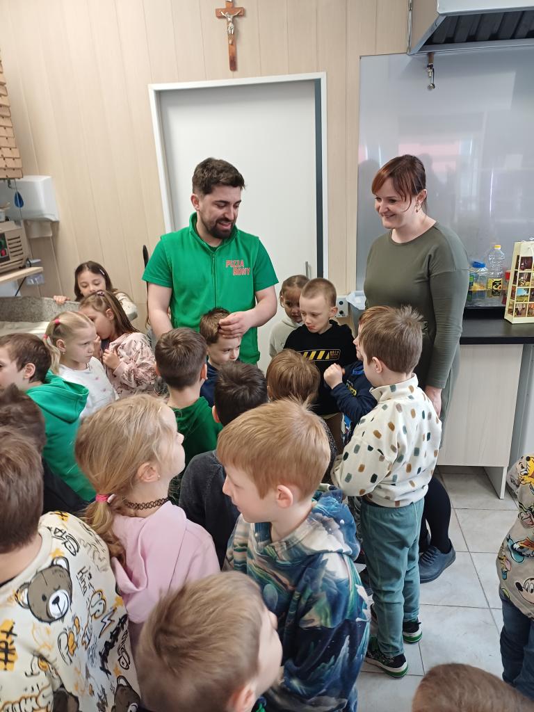 V rámci tématu o řemeslech a povoláních jsme se s dětmi z přípravných tříd vydali na zajímavou exkurzi do pizzerie Rony v Hlinsku. Cílem bylo přiblížit dětem práci lidí v gastronomii a ukázat jim, jak vzniká jejich oblíbené jídlo - pizza. Po příchodu nás mile přivítal personál pizzerie a děti měly možnost nahlédnout přímo do kuchyně. S velkým zaujetím sledovaly proces přípravy pizzy až po samotné pečení v peci. Pro mnohé z nich to byl úplně nový zážitek a bylo vidět, jak je tato ukázka baví. Velkým zpestřením byla i skutečnost, že tatínek jednoho chlapce z naší třídy v této pizzerii pracuje. Děti tak měly možnost vidět někoho, koho znají, přímo při práci, což pro ně bylo velmi motivující a inspirativní. Na závěr návštěvy jsme si všichni dosyta pochutnali na čerstvě upečené pizze! Jako milé překvapení děti navíc dostaly i malé pohoštění v podobě pitíčka. Exkurze se vydařila a děti si odnesly nejen parádní gurmánský zážitek, ale i nové poznatky o tomto zajímavém povolání. Velice děkujeme milému personálu pizzerie za jejich vstřícnost a výborné pohoštění!