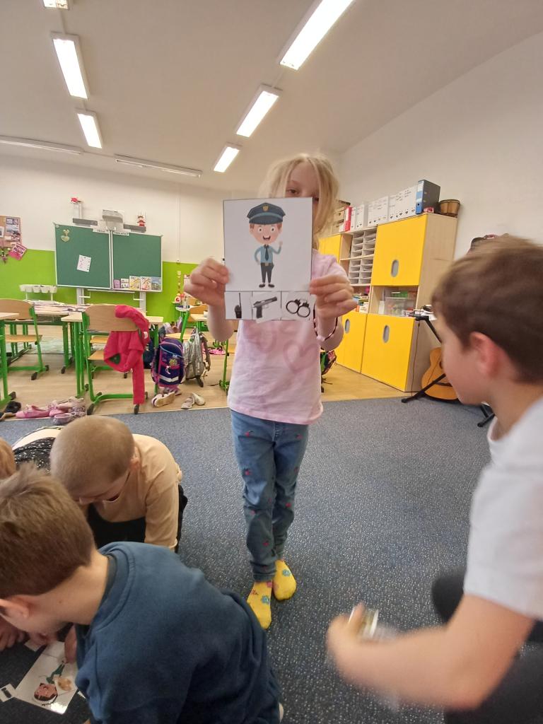 Předškoláci se v rámci tematického bloku o povoláních vydali poznávat zblízka i další profese. Velkým zážitkem pro ně bylo setkání s hasiči. Děti si mohly prohlédnout a osahat hasičské vybavení. Nejvíce je nadchla možnost vyzkoušet si stříkání vody z hadice. Zajímavé bylo také setkání s městskou policií. Děti si sedly do policejního auta a na chvíli se tak vžily do role policistů. Své zážitky pak rozvíjely i při tvoření ve třídě, kde poznávaly vybavení různých profesí. V Domově dětí a mládeže v Hlinsku si děti vyzkoušely dokonce i práci s keramikou. Nechyběl ani zpěv písní o povoláních, který celé téma příjemně doplnit. Děti si z těchto aktivit odnesly spoustu nových poznatků a hezkých zážitků.