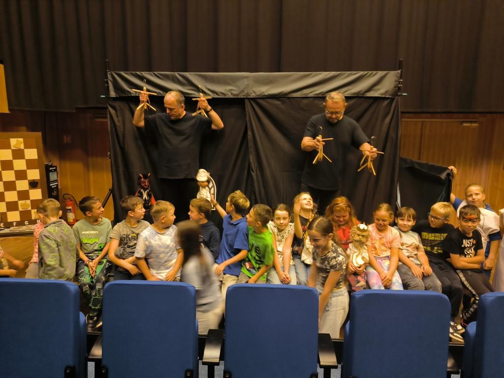 Žáci prvního stupně naší školy (třídy 1. až 5.) zhlédli 25. 2. 2025 divadelní představení v anglickém jazyce s českým vypravěčem jmenující se DICK WHITTINGTON AND HIS CAT. Jednalo se o tradiční britský příběh o chudém sirotku Dickovi, který se i díky své kamarádce kočce stane starostou Londýna. Chudý sirotek Dick Whittington utratil své poslední peníze na kočku Kitty. Společně se vyd&aacut