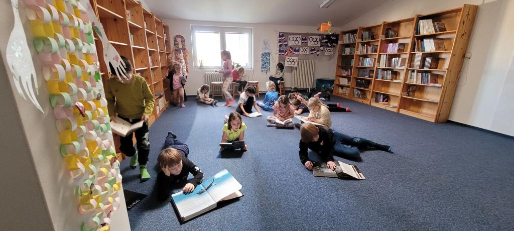 V rámci projektu Březen – měsíc knihy jsme se vydali do městské knihovny, konkrétně do dětského oddělení. Paní knihovnice nás mile přivítala a popovídala si s dětmi o důležitosti umět číst a rozumět přečtenému. Vysvětlila jim, že si tím rozvíjejí slovní zásobu, seznamují se s pravopisem a hlavně se dozvídají spoustu zajímavých věcí z knížek o životě, přírodě i světě. Poté děti