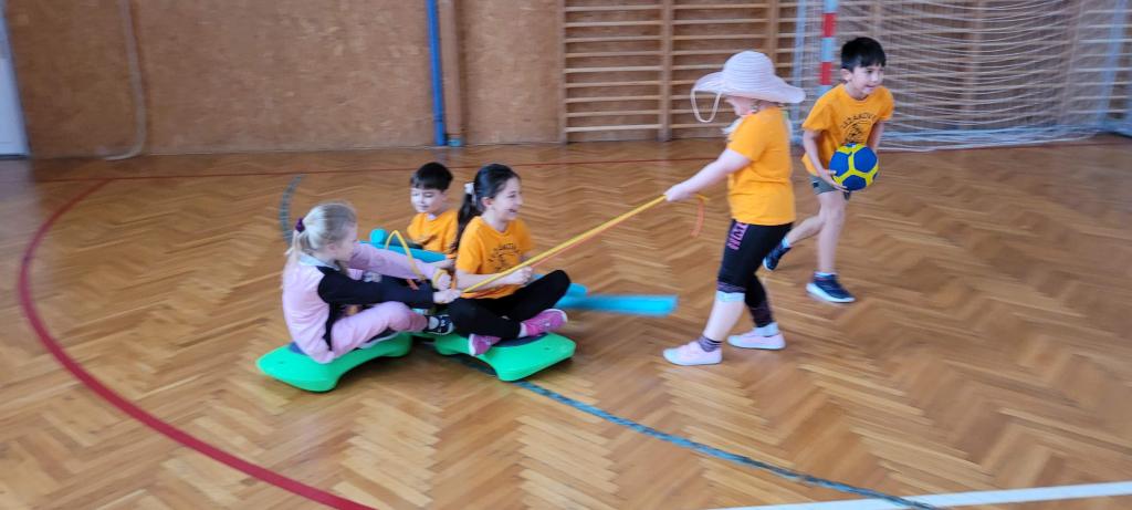 Do naší tělocvičny dorazila speciální návštěva, malí sportovci ze školky! Druháčci se proměnili v opravdové trenéry a s velkou zodpovědností a ještě větším nadšením si pro ně připravili pořádnou porci pohybu. Na stanovištích se děly věci. Houpání na kruzích jako v cirkuse, skoky ze švédské bedny jako odvážní akrobati, šplhání po žebřinách a skoky dolů