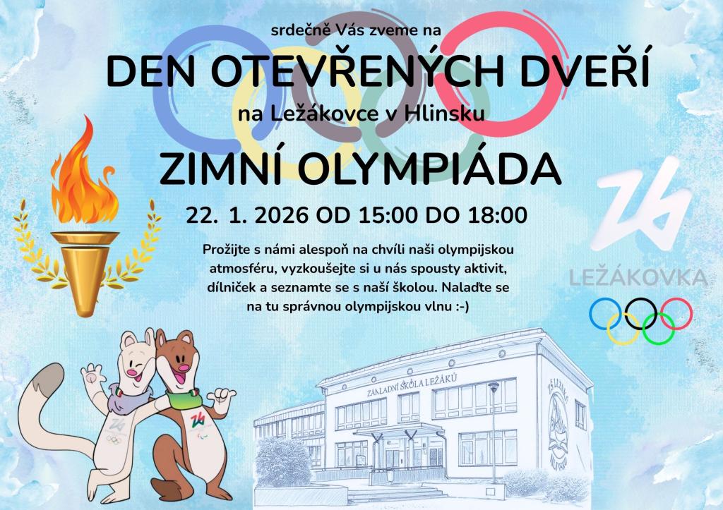 Prožijte s námi alespoň na chvíli naši olympijskou atmosféru. Ve čtvrtek 22. ledna od 15 do 18 hodin si u nás vyzkoušejte spousty aktivit nejen pro předškoláčky, tvořivých dílniček a seznamte se s celou naší školou. Vašimi průvodci se stanou naši žáci, kteří pro vás celou školu vyzdobili v duchu zimní olympiády. Učitelé jsou připraveni zodpovědět všechny vaše dotazy týkající se výuky v naší škole.